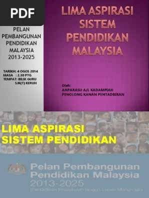 Aspirasi sistem pendidikan negara adalah untuk meletakkan malaysia dalam kelompok sepertiga teratas dalam pentaksiran antarabangsa mengikut . 5 aspirasi pendidikan dalam pelan pembangunan pendidikan malaysia pppm 2013 2025. Aspirasi system pendidikan negara adalah untuk meletakkan malaysia Pelan pembangunan pendidikan malaysia berhasrat untuk mencapai lima keberhasilan bagi pelan pembangunan pendidikan . Kami cikgu 5 aspirasi utama sistem pendidikan.